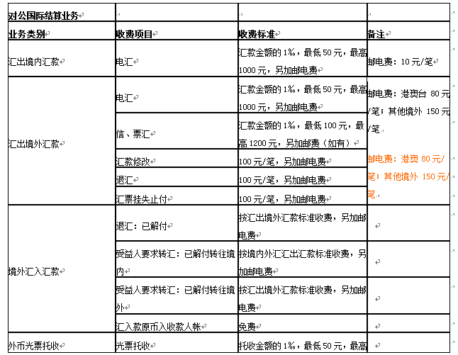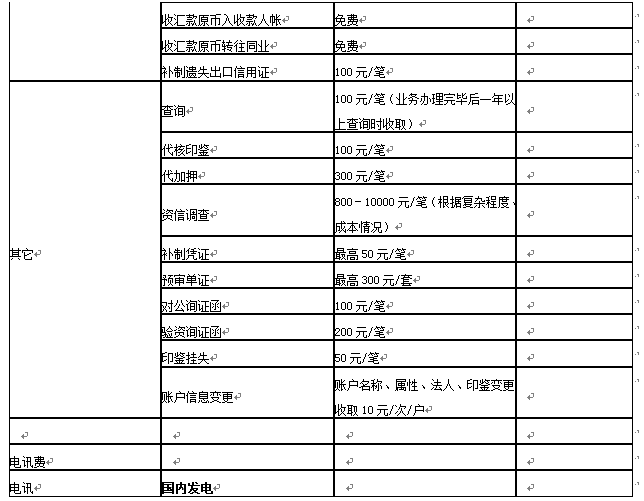 桐鄉(xiāng)農(nóng)商銀行國際業(yè)務(wù)部服務(wù)收費(fèi)業(yè)務(wù)價(jià)格表